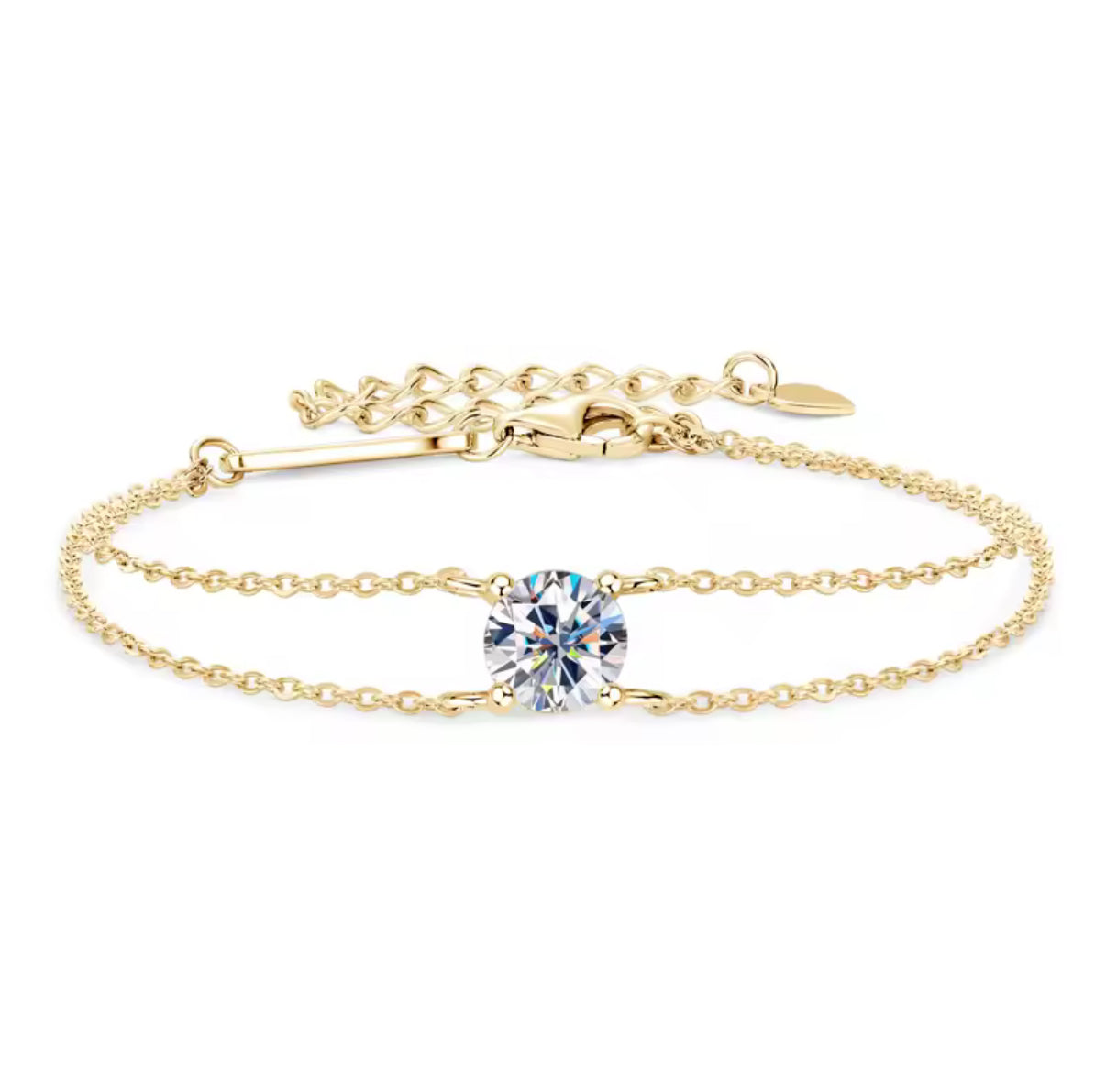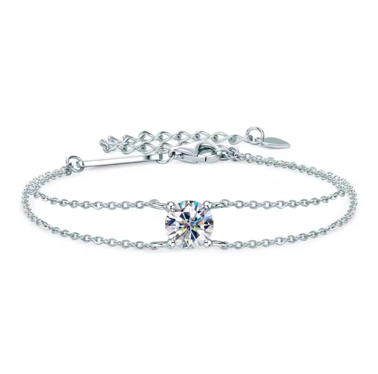 במרכזו אבן מואיסנייט נוצצת במשקל 1 קראט, המשובצת על שרשרת כפולה בעבודת יד, בציפוי זהב או עשוי כסף סטרלינג 925.