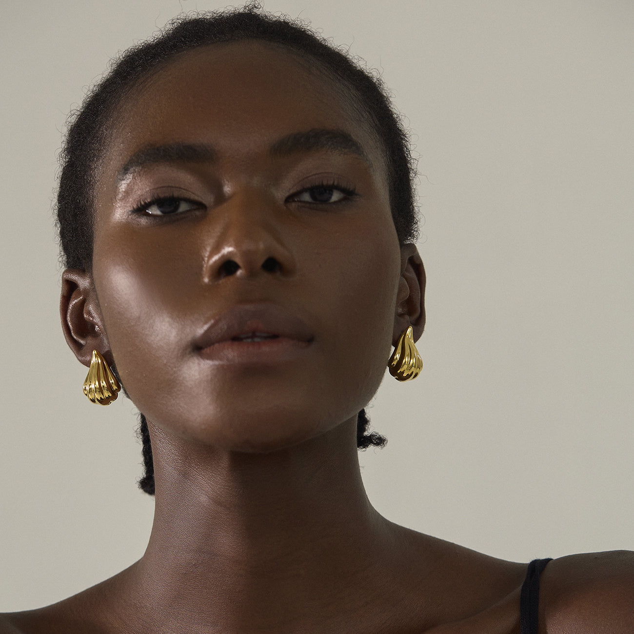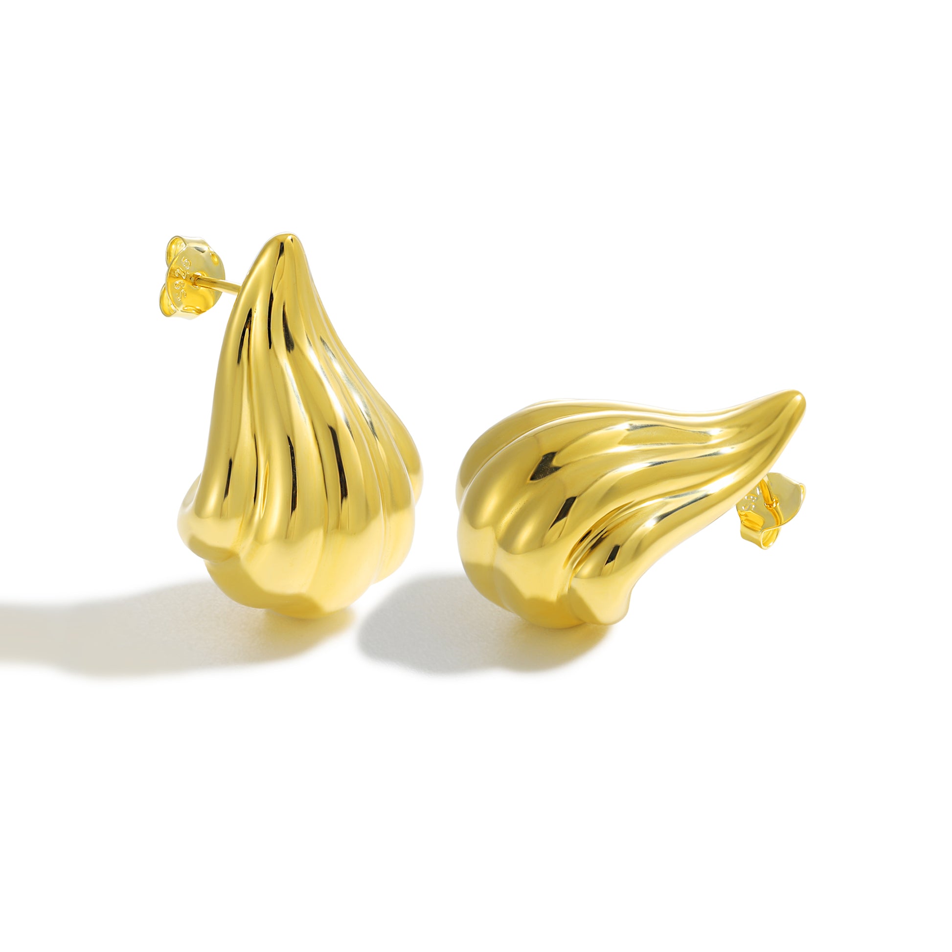 עגילים גדולים בעיצוב גלי לא סימטרי, בהשראת תנועת הים והצדפה – עשויים מכסף סטרלינג 925 בציפוי זהב 18K או כסף לבחירתך.